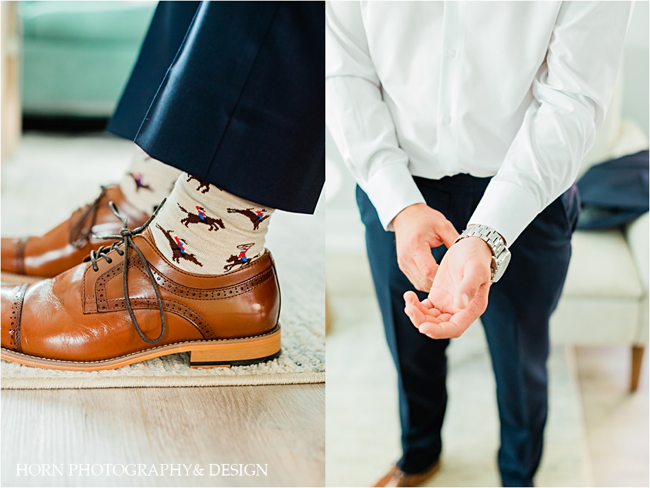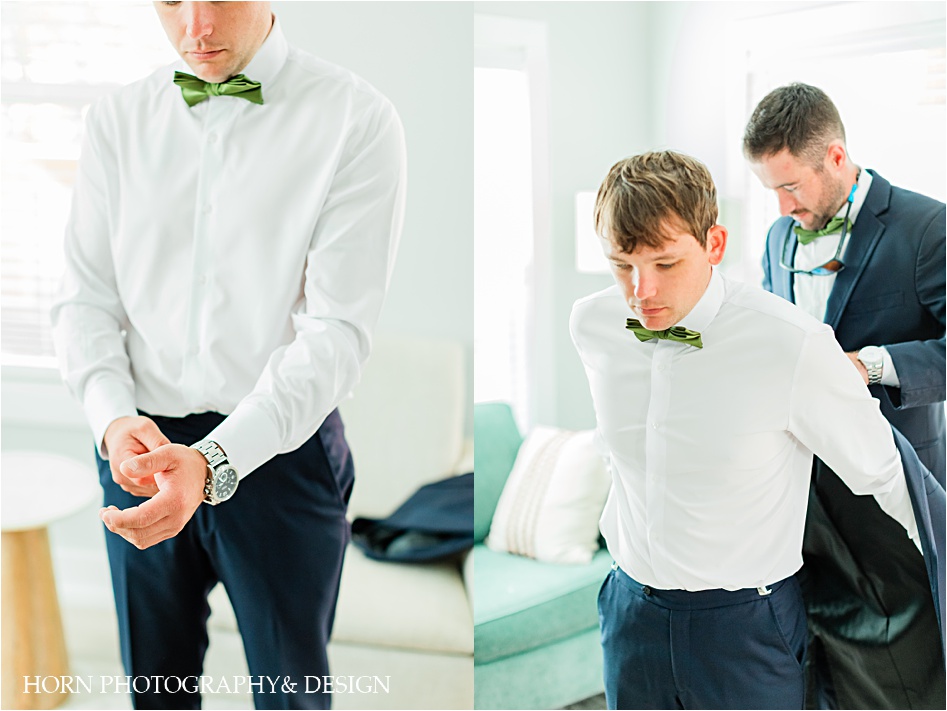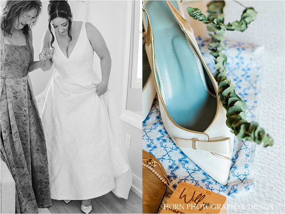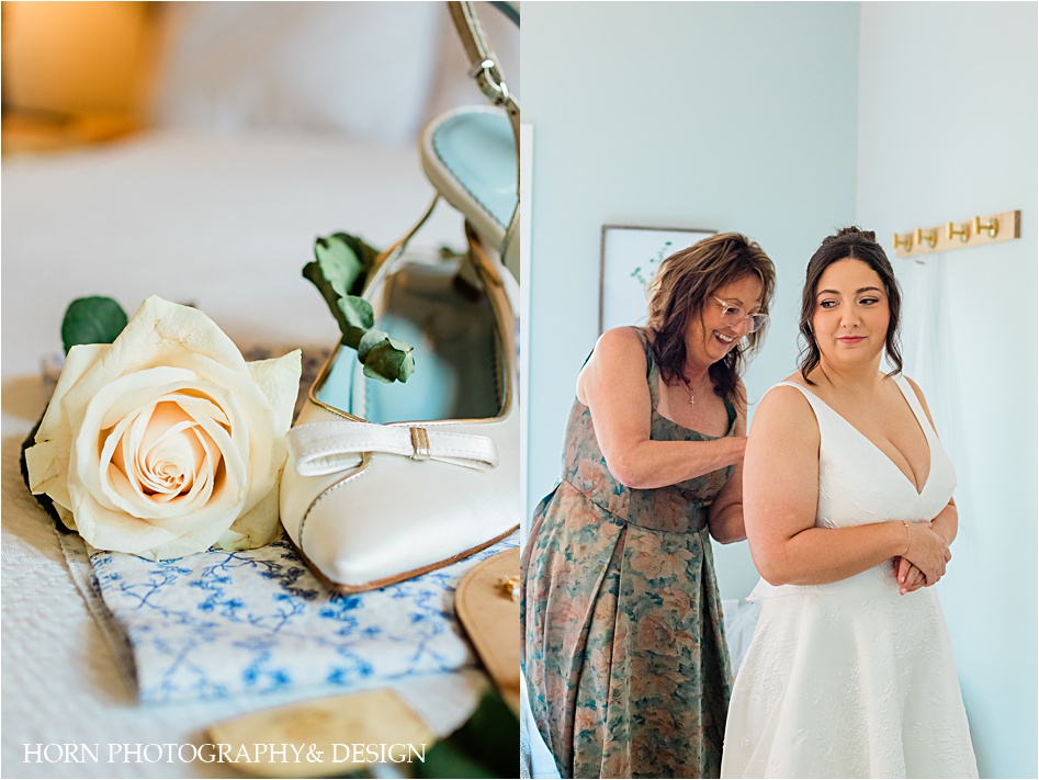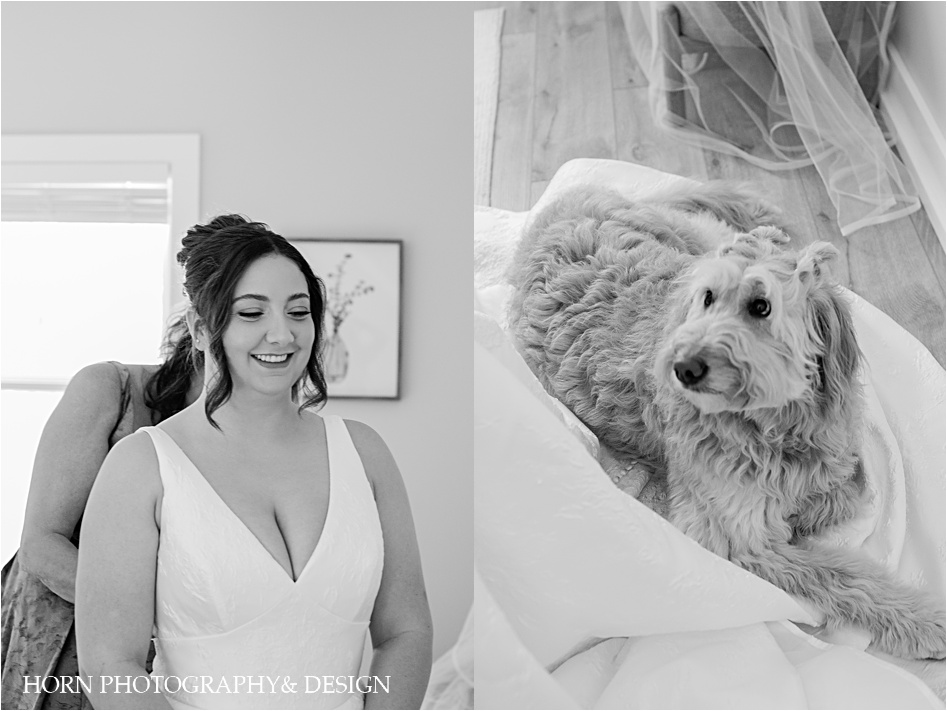 The ladies readied in one of the four Limelight Inn cottages, and of corse Fern was there to keep and eye on it all. Fern is Hannah’s pup and best dog ever. Hannah choose to slipk into her Justin Alexander Calypso designer Wedding gown with the help of her mother while the ladies waited downstairs for their first look. Her Brocade Ball Gown with a V-Neckline and Keyhole Back fit perfectly with the final touching being her Sarah Flint heels.