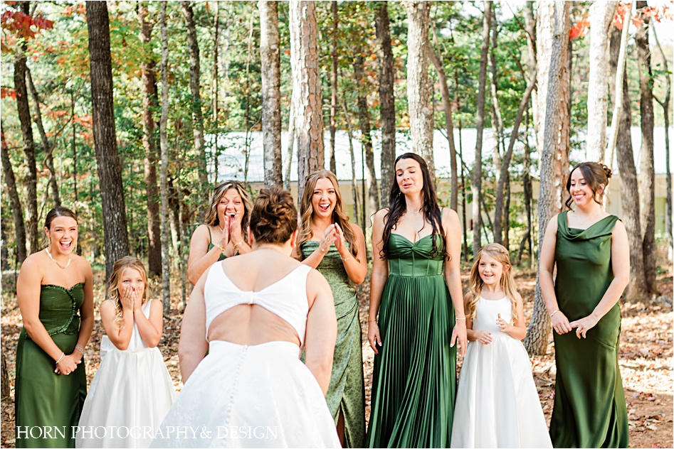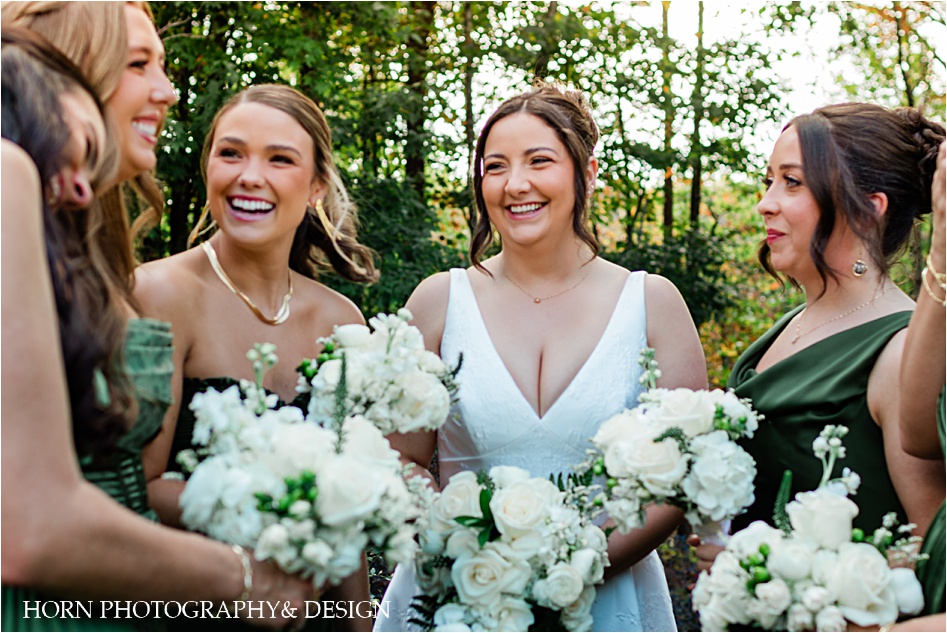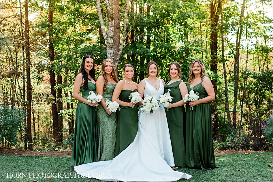 Hannah chose colors of olive green, white and gold for her wedding day to highlight fall, and let me tell you the ladies looked fabulous in their olive green Azazie Atelier bridesmaid dresses. Makeup Artist Kelsea JMUA and hair designer Anna Claire created stunning looks for all the ladies.