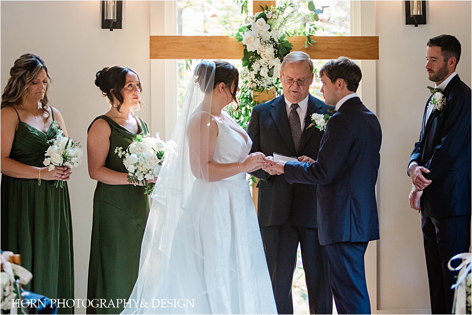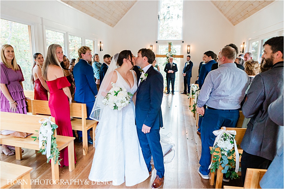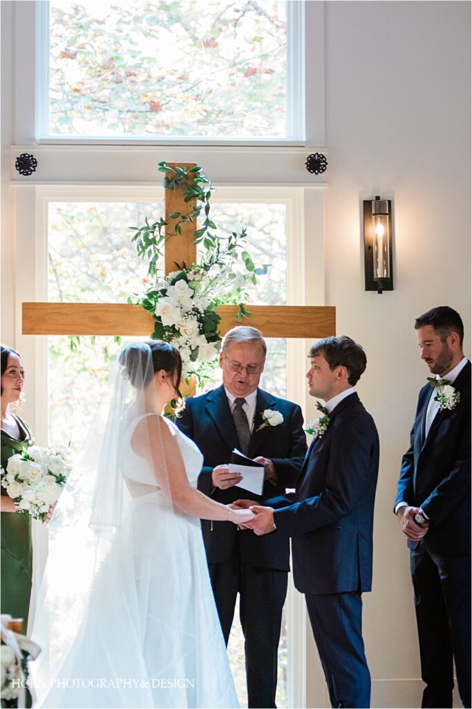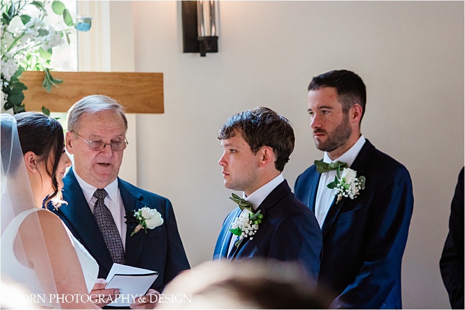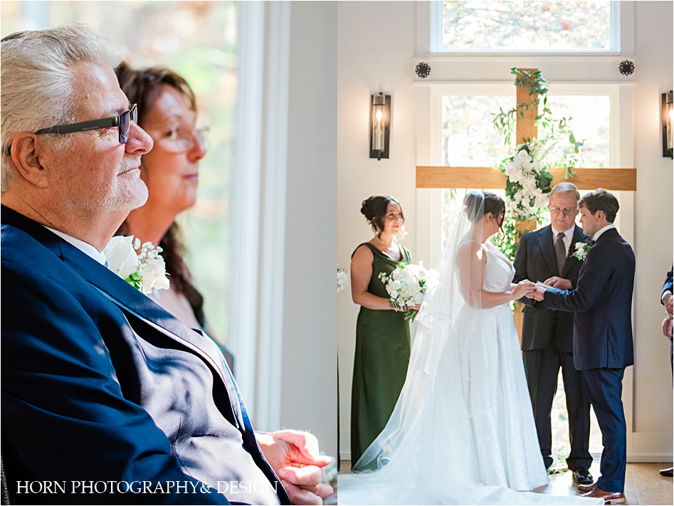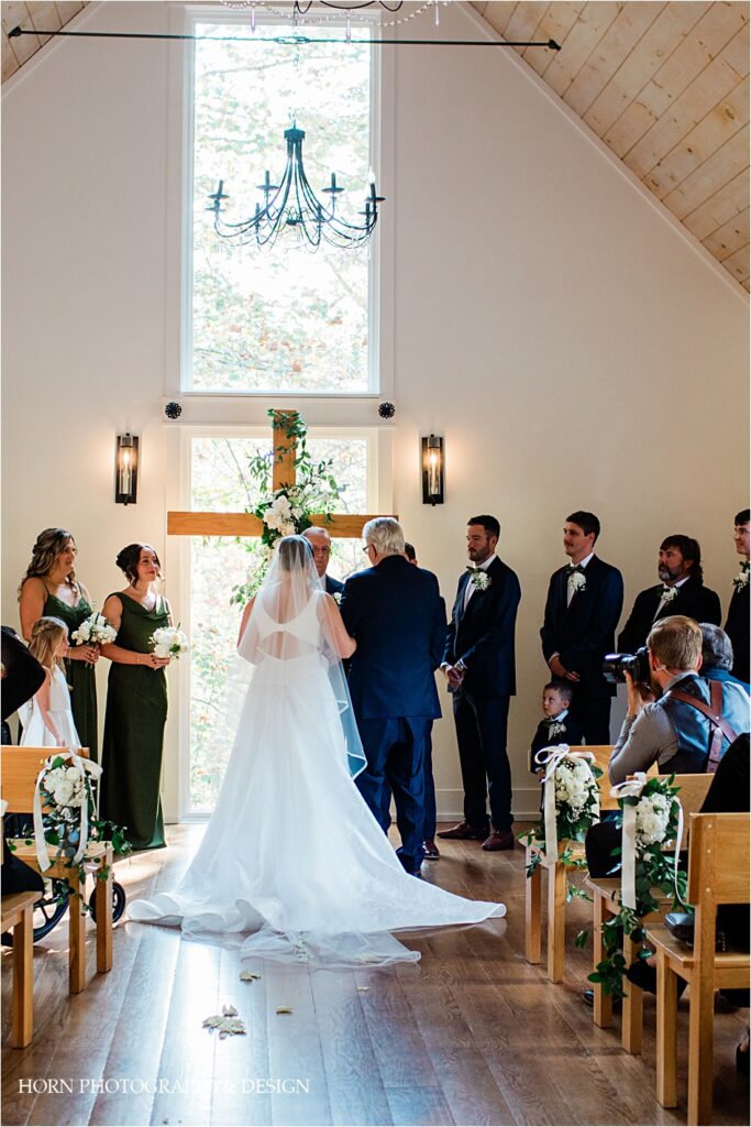 Juliette Chapel looked so lovely as guest took their seats in the pews. It is the perfect setting for their intimate wedding. The large windows which wrap around the entire chapel let in do much stunning natural light and beautifully framed God’s creation of the surrounding forest. It was simplicity and the elegant beauty of nature coming together.