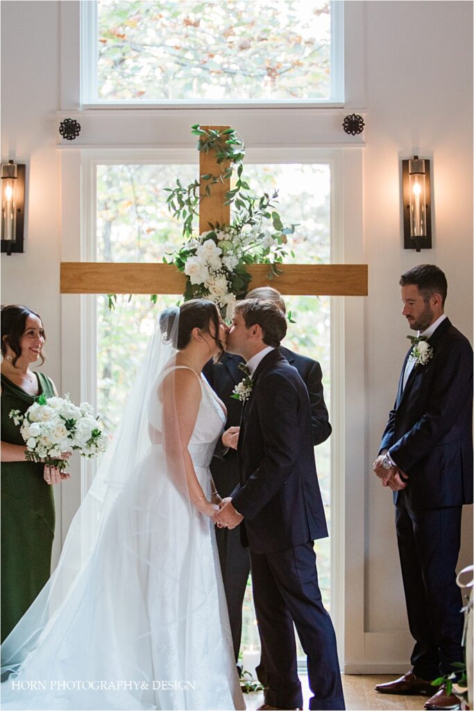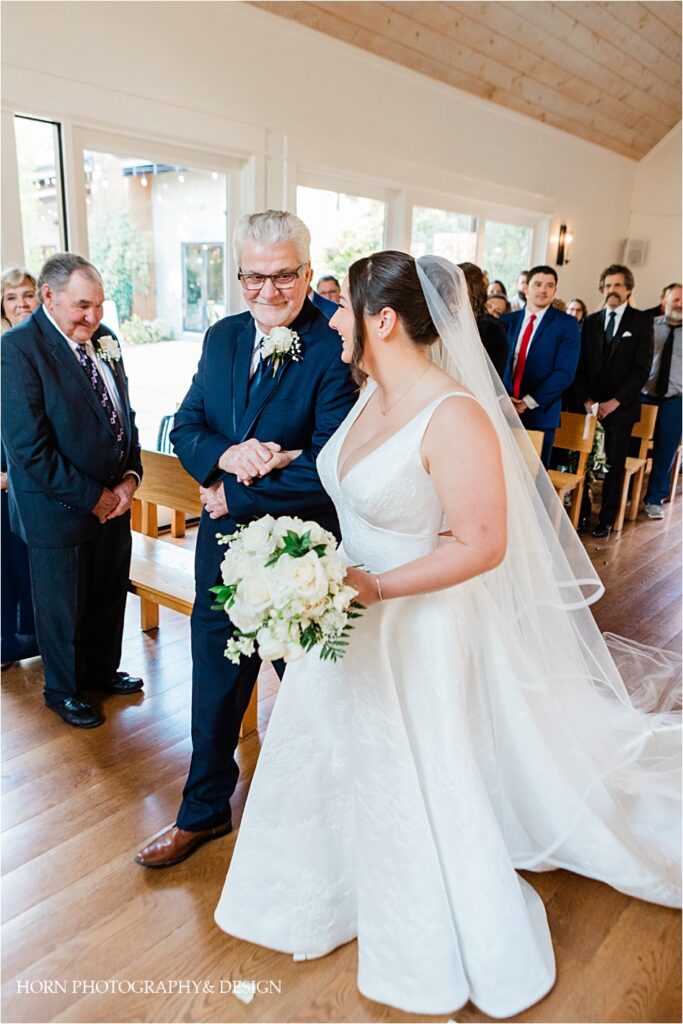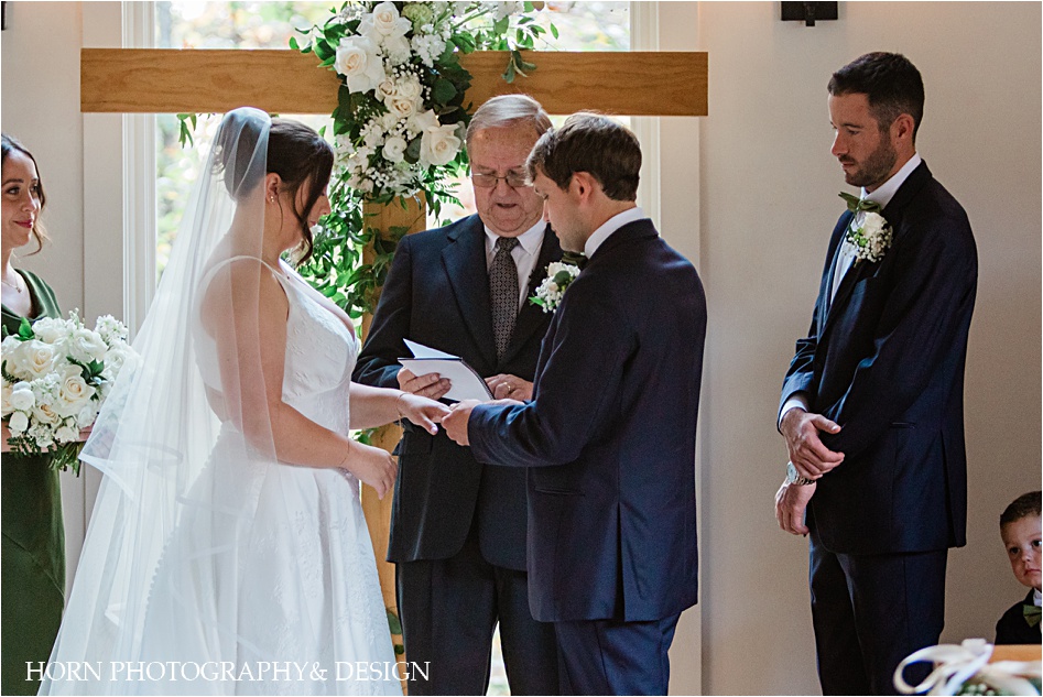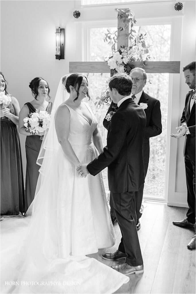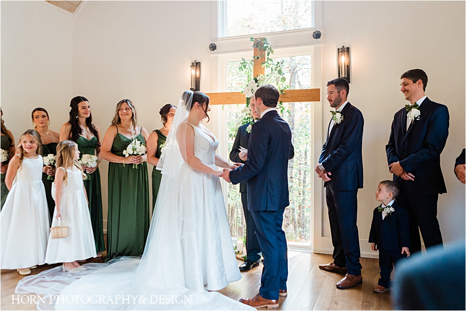 Juliette Chapel looked so lovely as guest took their seats in the pews. It is the perfect setting for their intimate wedding. The large windows which wrap around the entire chapel let in do much stunning natural light and beautifully framed God’s creation of the surrounding forest. It was simplicity and the elegant beauty of nature coming together.